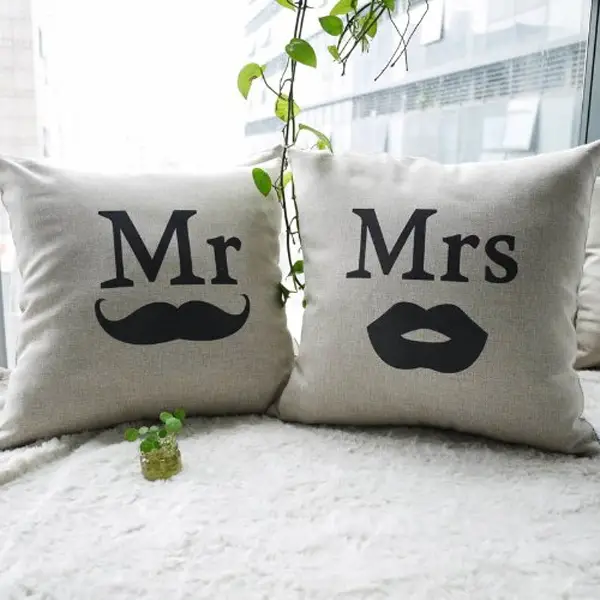 16. Pillow Cases Set for Couple “Mr. & Mrs.”. These amazing pillow covers are marked with mustache and lips, so it’s a cute gift for any couple because it fits both of you. This stylish statement will fit any room design. [$25.95]