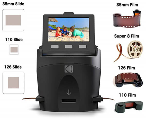 This neat device converts old 35mm, 126, 110, Super 8 and 8mm negatives and slides to digital files. Now you can shoot either and have both. Also connects to your tv or computer for direct viewing and editing.