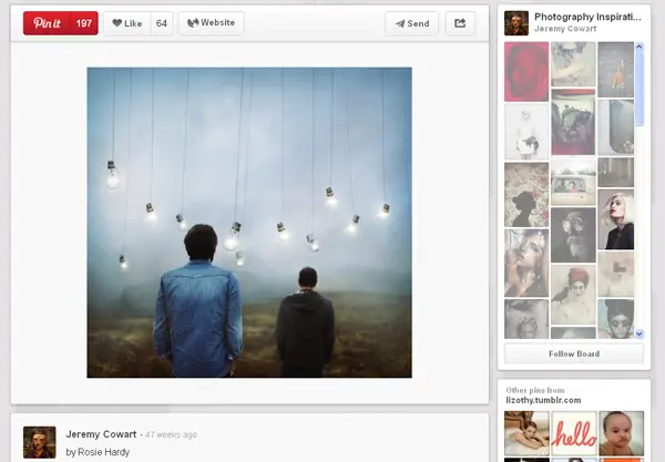Pinterest is one of the fastest and influential social-media platforms today. It’s not just an interesting and inspiring network. Pinterest offers you the easiest and fastest way to get your works seen by millions. Just one simple “re-pin” of your photo could start a snowball effect that will make people open your image on the thousands screens all over the planet!