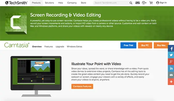 Camtasia is a screen recording and video editing tool. It will help you to record everything you do on your screen, if you want to do some video tutorials. You can customize and edit your content to get the job done. Camtasia allows you to not only record your screen movements, but also import HD videos from your camera, smartphone or other sources.